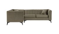 The Mary left hand corner sofa is a versatile and stylish piece of furniture suitable for both living rooms and office spaces. Its simple yet elegant design, featuring vertical stitching on the back and sides, effortlessly blends modern and classic styles, making it a versatile addition to any interior decor. Upholstered in a choice of soft fabrics, with many colour options, it's easy to match this corner sofa with your existing decor. Elevated on black metal legs, it exudes a sense of lightness and elegance.